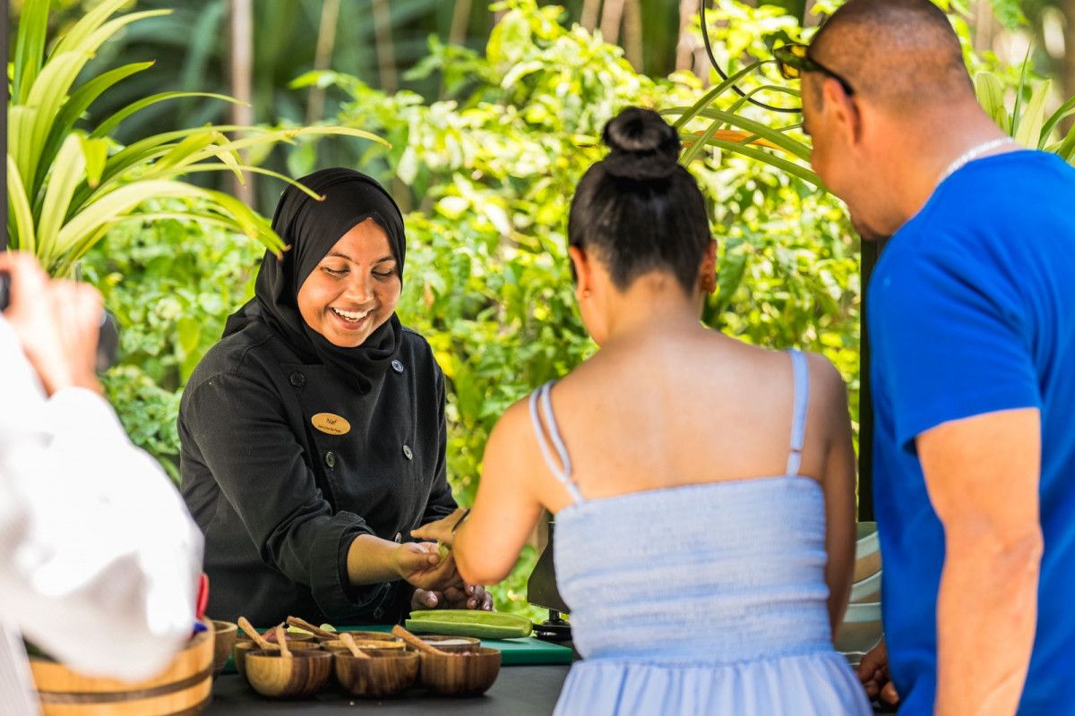 She speaks about how each ingredient finds its place in Maldivian cooking. How certain flavours come together, not by design, but by tradition. The garden is not presented as a backdrop. It is part of the process. Guests are not just shown what is used, they are invited to understand why.