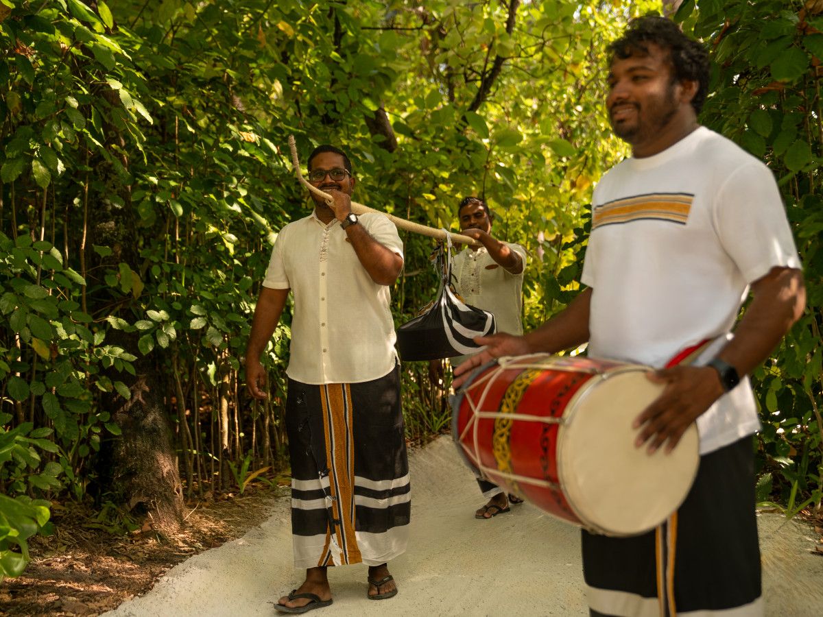 Beyond the table, Naladhu has also introduced a dedicated Cultural Corner, offering guests a quieter, more meaningful connection to Maldivian heritage. Guided by the island’s Cultural Insider, guests are invited to listen to stories from the past, weave palm leaves into handcrafted keepsakes to take home, and experience the rhythms of Boduberu through intimate drumming sessions. Each moment is intentionally unhurried, reflecting Naladhu’s philosophy of cultural immersion through gentle, meaningful encounters.