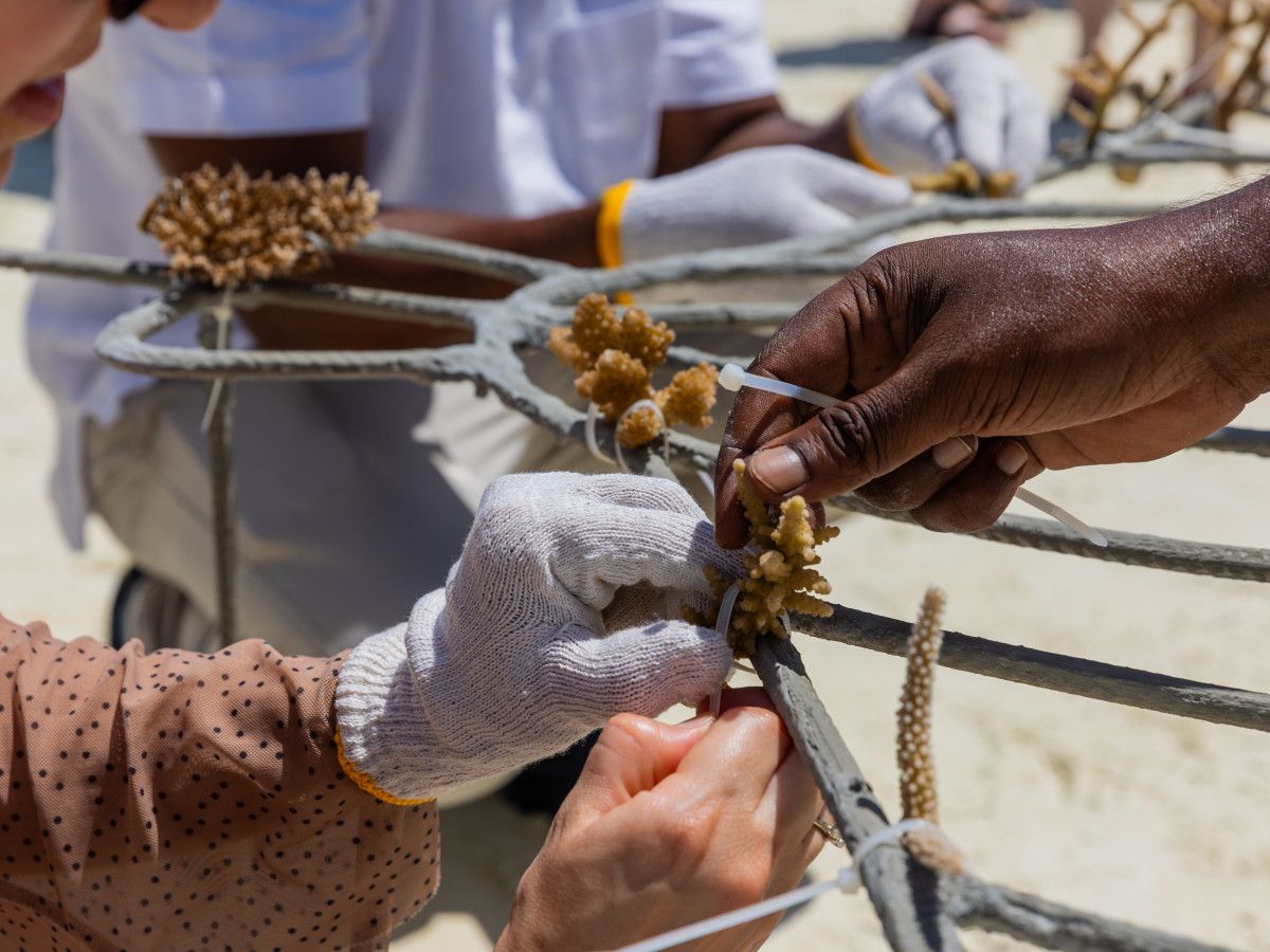 Set against a calm turquoise backdrop, guests gathered for an intimate, hands-on introduction to coral restoration, an experience designed to bring travellers closer to the ocean in a more personal and lasting way. The Adopt A Coral Frame programme invites guests to take part in nurturing new coral growth by attaching fragments onto specially designed frames they have selected, which are then placed in the lagoon to form a thriving new reef.