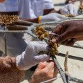 The process begins with the careful collection of healthy coral fragments, guided by the resort’s marine biologist. These fragments are secured onto coral frames and placed in strategic positions in the resort’s coral garden, where conditions support natural growth and marine biodiversity. Guests are invited to adopt their chosen coral frame, take part in the planting process, and receive ongoing updates on its development, including photos shared every six months.