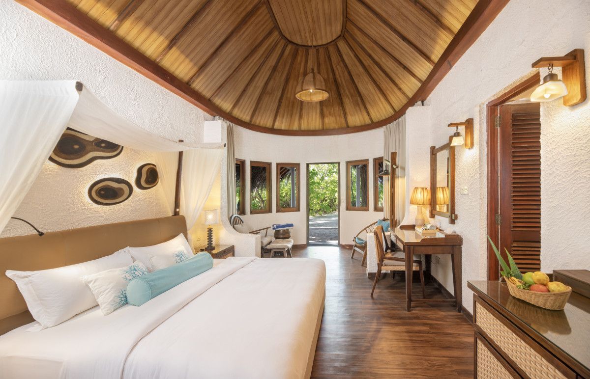 Makunudu Island is home to just 36 beachfront bungalows, each nestled within lush island vegetation. Designed with rustic charm and modern comforts, the Beach Bungalows and Deluxe Beach Bungalows draw inspiration from Maldivian heritage and natural textures. Positioned along the shoreline, the bungalows place the lagoon only steps away, allowing guests to move effortlessly between indoor comfort and the outdoors.