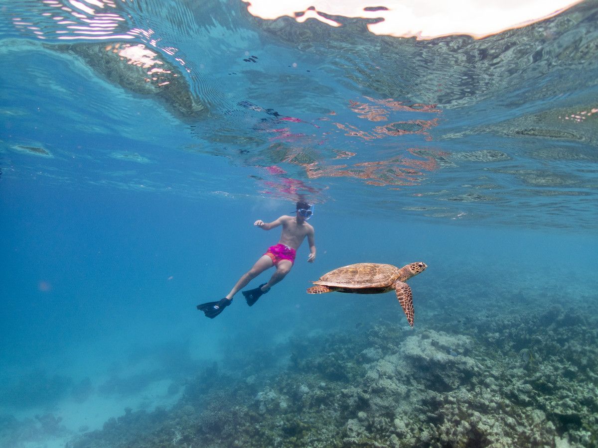 Eri’s house reef is home to a diverse and well-established marine population. Regular sightings include white-tip and black-tip reef sharks, nurse sharks, hawksbill sea turtles, mobula rays and spotted eagle rays, alongside dense schools of reef fish. The accessibility of the reef allows for easy repeat and multi-day marine journeys, making it possible to notice behaviour, habitats and individual characteristics over time rather than through one-off sightings.