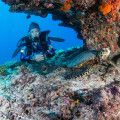 Hawksbill turtles are among the most consistently observed residents of Eri’s house reef. To date, 14 individual turtles have been identified by the resident dive team, each recognised by distinctive shell patterns, markings and physical traits. Familiar faces include Rosie, Cara and Anna, each recognised by their distinctive shell markings, from patterned carapaces to pale scutes and barnacle-speckled shells. Moving along their usual coral routes, these turtles have become part of Eri’s house reef community, named and logged through repeated sightings, and offering returning divers the chance to recognise and befriend them over time. Eri also invites guests to take part in this ongoing effort, where they will be given the chance to name any new turtle they discover that hasn’t been documented previously.