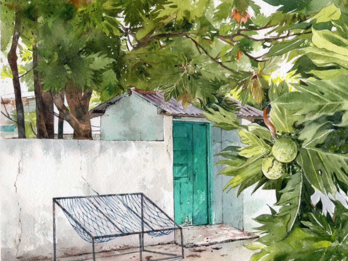Shimha Shakeeb is known for her beautiful watercolor paintings that capture the landscapes, architecture, and traditions of the Maldives. She has exhibited her work at  Dubai Expo 2020, Crossroads Maldives, and the National Art Gallery in Malé, and has worked  with well-known institutions and resorts, including The Ritz-Carlton Maldives.