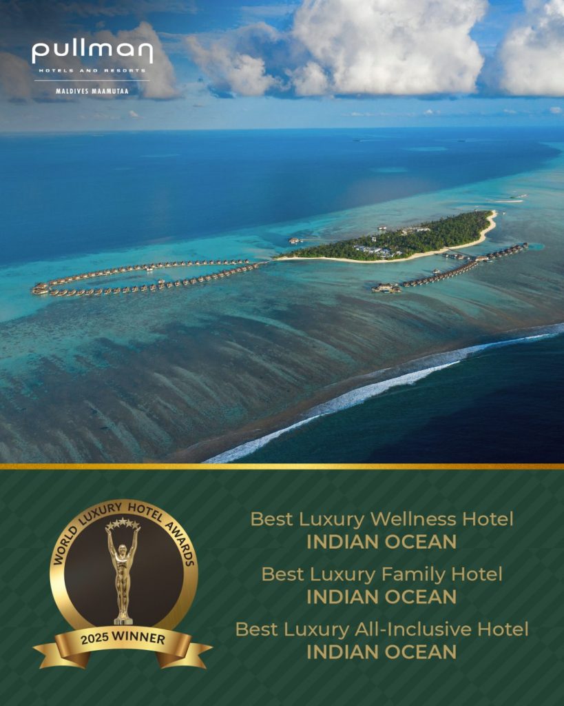 GAAFU ALIFU ATOLL, MALDIVES – Pullman Maldives Maamutaa proudly celebrates triple recognition at the 2025 World Luxury Awards, earning titles as Best Luxury All-Inclusive Hotel, Best Luxury wellness Hotel, and Best Luxury Family Hotel in the Indian Ocean region.