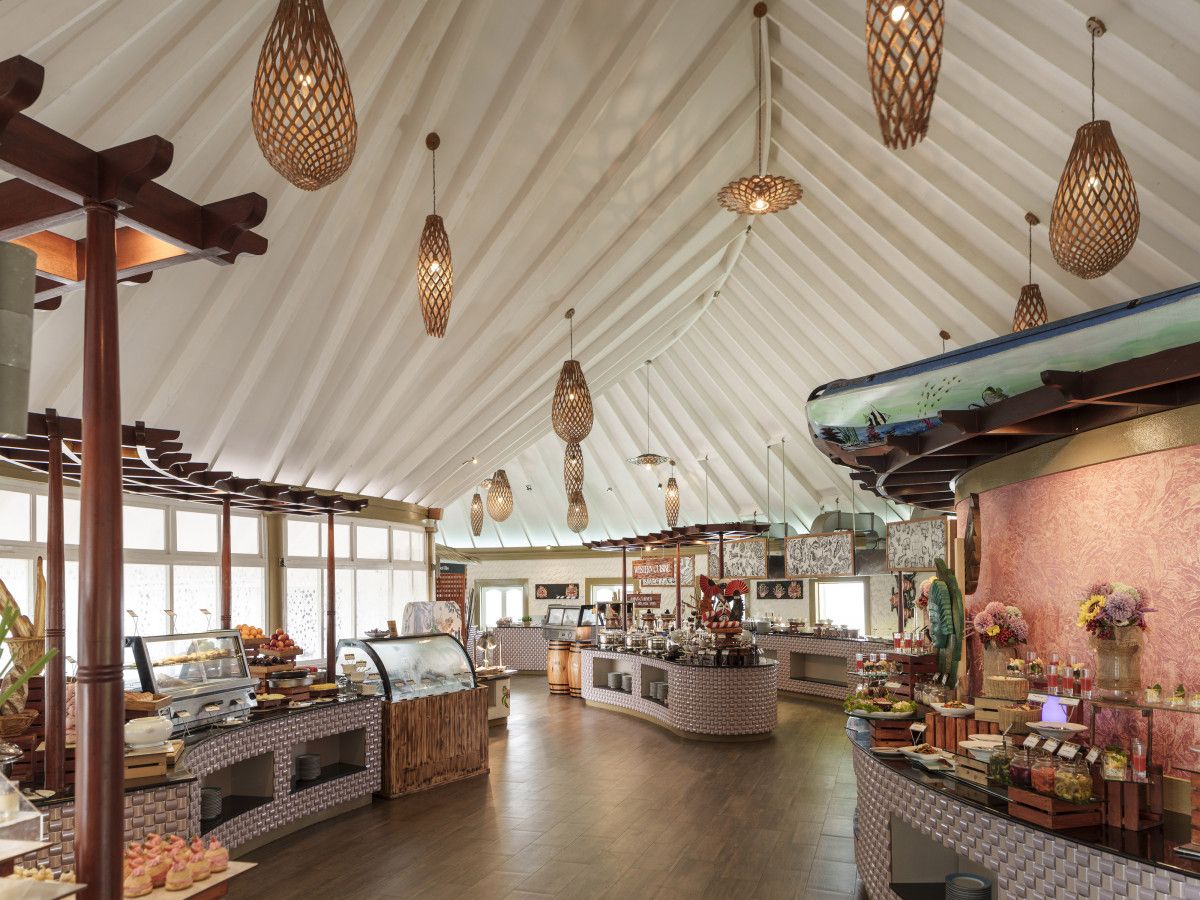 For beachside, sunlit seclusion, look no further than Sun Siyam Vilu Reef. Nestled in Dhaalu Atoll, a mere 45-minute seaplane flight from Velana (Malé) International Airport, the resort exemplifies its breathtaking surroundings and charming villas with a Maldivian touch.